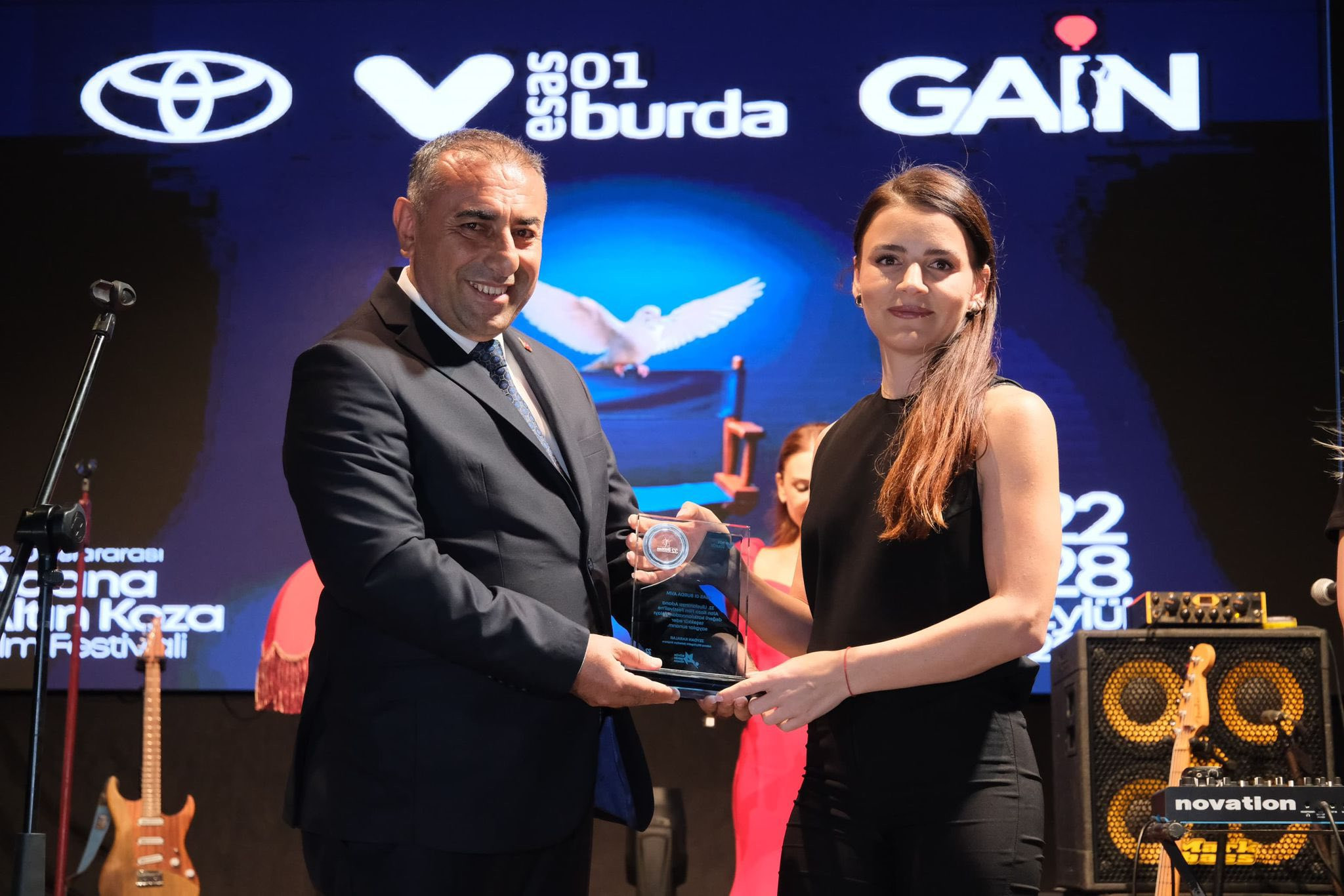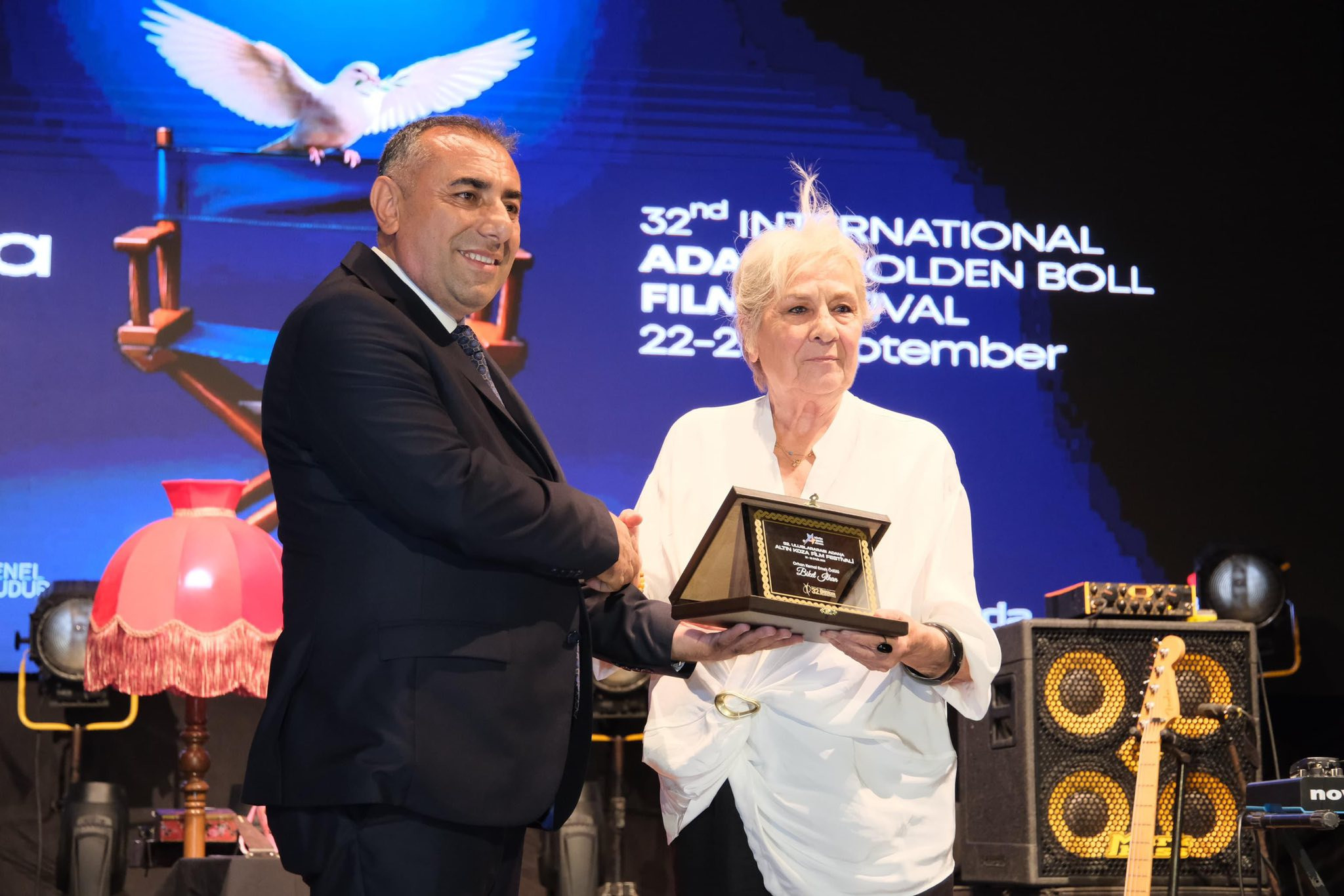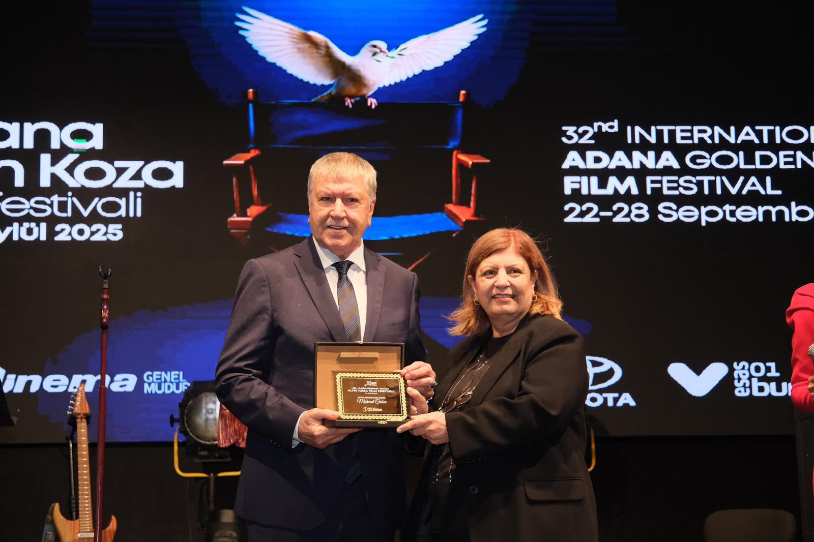 Orhan Kemal Emek Ödülü'ne layık görülen yönetmen Biket İlhan ödülünü Adana Büyükşehir Belediye Başkan Vekili Güngör Geçer'in elinden aldı.