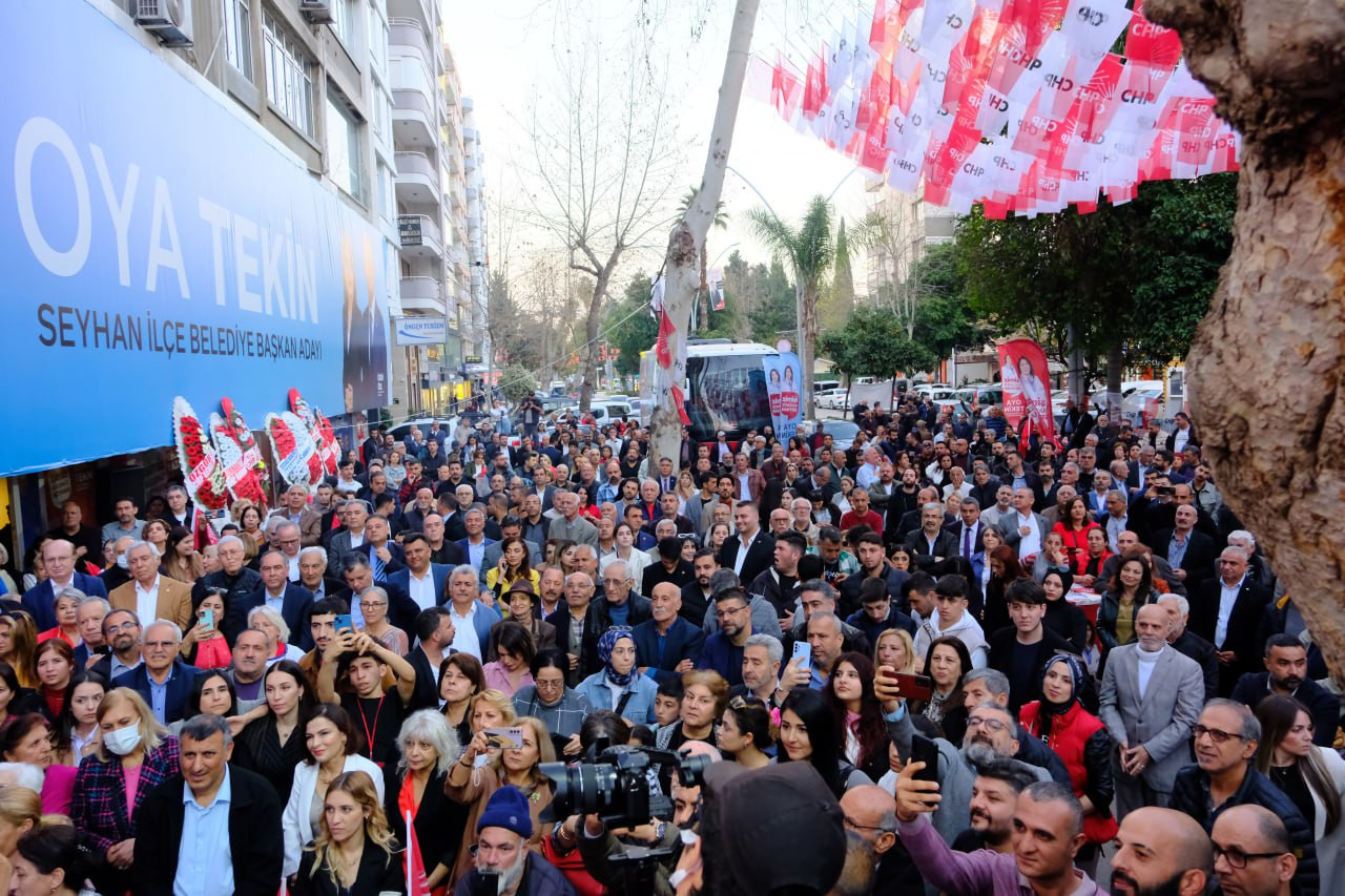 CHP Seyhan Belediye Başkan Adayı Oya Tekin’in Ziyapaşa Bulvarı’ndaki Merkez Seçim Koordinasyon Merkezi görkemli ve coşkulu bir şekilde açıldı. Tekin buradaki konuşmasında, “Üreterek, paylaşarak, eşit, adil ve şeffaf bir anlayışla şehri birlikte yönetmek için, Seyhan'da daha mutlu bir yaşam kurmak için yola çıktık” dedi. Yapılan diğer konuşmalarda ise Adana’nın tarihinde ilk kez bir kadın belediye başkanı seçmiş olacağına vurgu yapıldı.