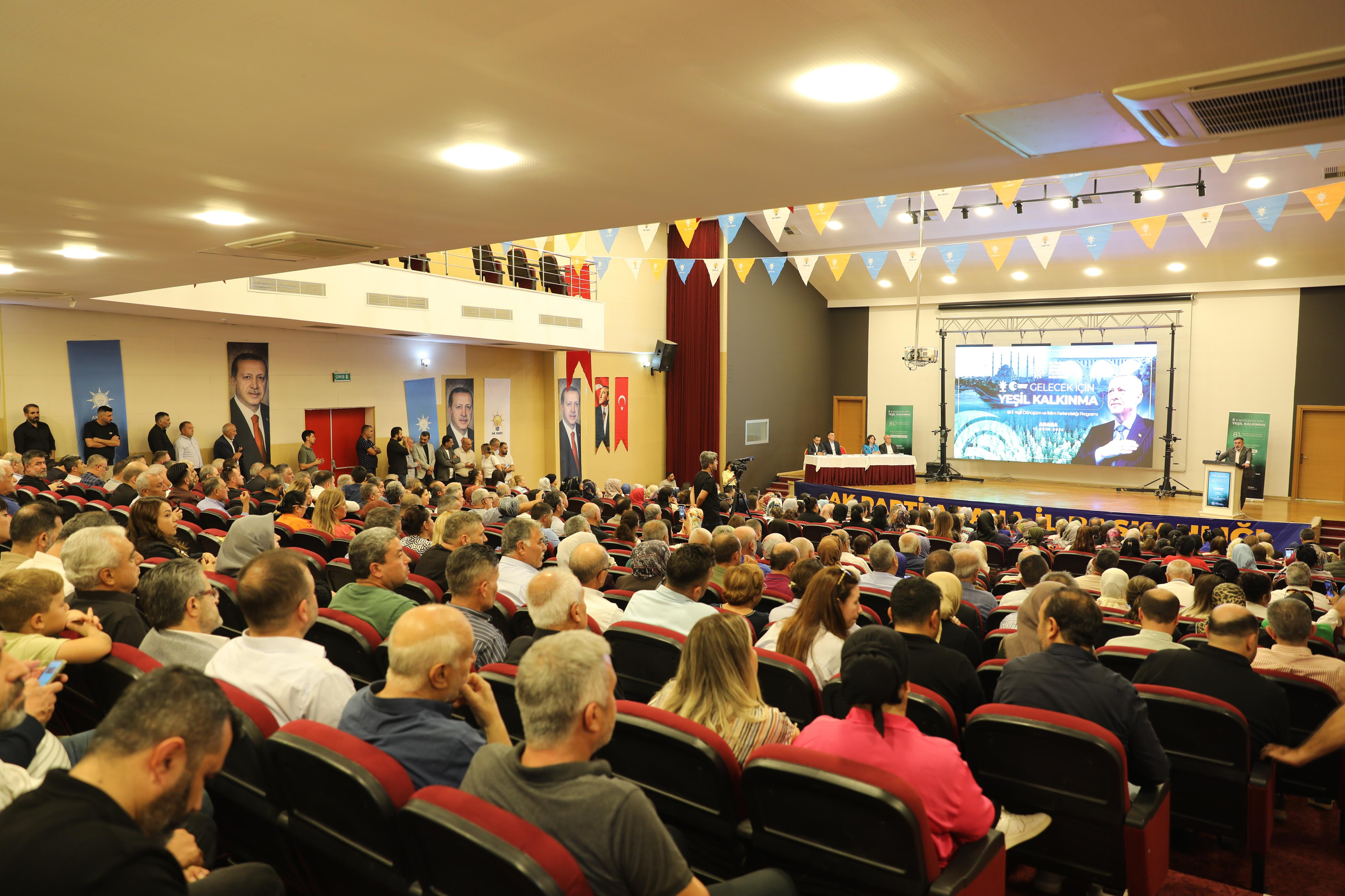 AK Parti Adana İl Başkanı Tamer Dağlı, teşkilatın gücünün samimiyet ve dayanışmadan geldiğini belirterek,“İnançla ve birlik içinde çalışarak hem çevremizi koruyacak hem de Türkiye Yüzyılı vizyonunu daha yeşil,daha güçlü bir gelecekle buluşturacağız.” dedi