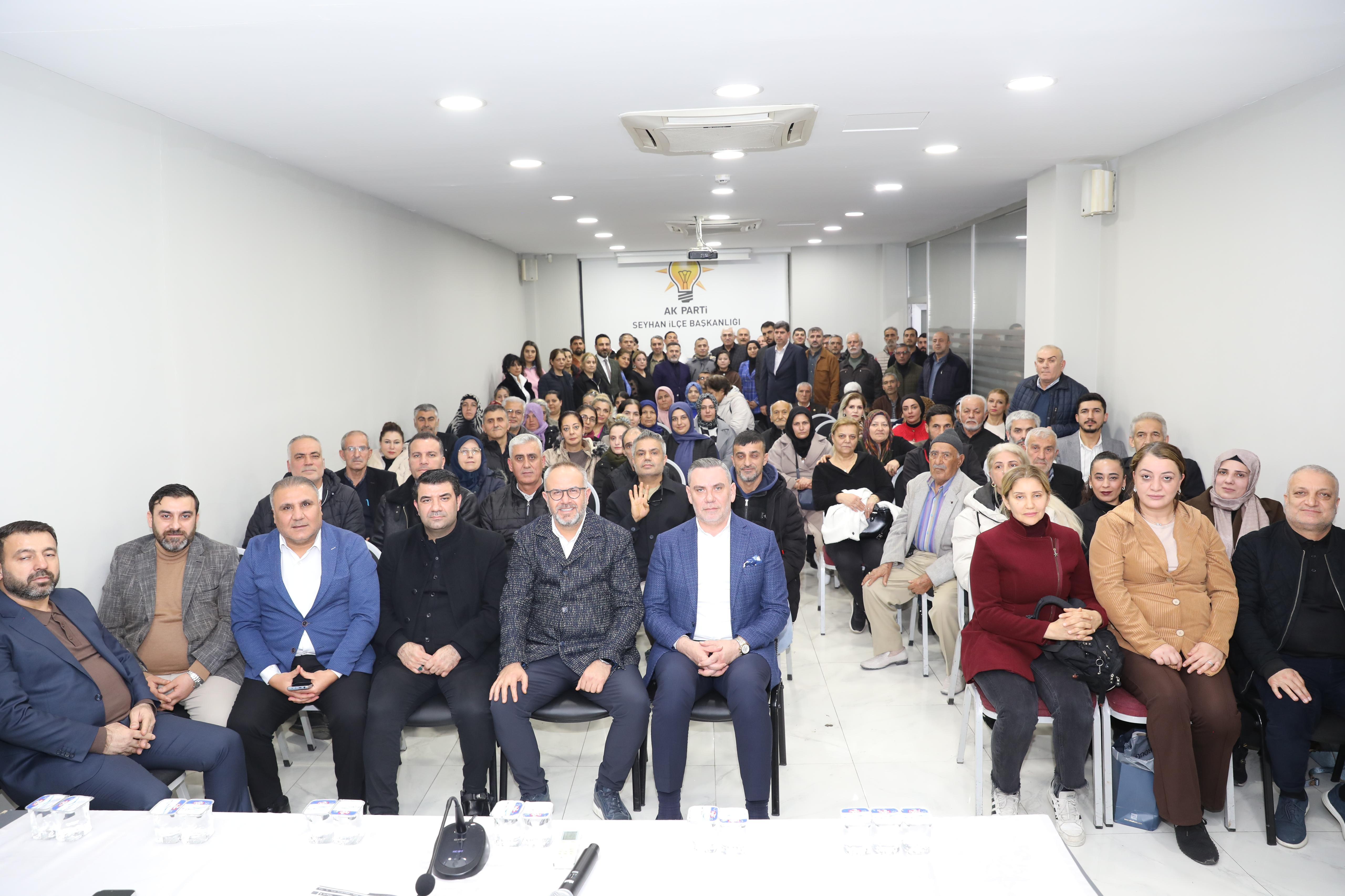 Toplantıya; AK Parti Erzurum Milletvekili ve Adana İl Koordinatörü Mehmet Emin Öz, AK Parti Adana İl Başkanı Tamer Dağlı, AK Parti Seyhan İlçe Başkanı İbrahim Gökçedağ, il başkan yardımcıları, İlçe Kadın Kolları Başkanı Sümeyra Özdemir, İlçe Gençlik Kolları Başkanı Oğuzhan Yarğı, bölge başkanları, mahalle başkanları ve mahalle yöneticileri katıldı.