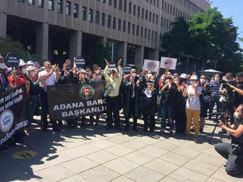 Adana’dan gelen yönetim kurulu üyeleri ve avukatlar ile birlikte Baro Başkanı Av. Veli Küçük, yaptığı açıklamada "Pandemi bahanesi ile bugün yapılacak olan savunma mitingimiz engellenmiş, Anıtpark tamamen kapatılmış ve bu nedenle planlanan mitingin gerçekleştirilme imkanı kalmamıştır.