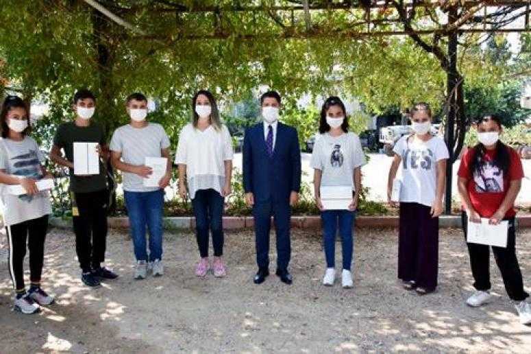 Daha sonra Başkan Ay, eşi Hatice Ay ve beraberindekiler, başarılı öğrenciler Nisa Nur Demir, Güzide Nuride Varlı, Yusuf Ziya Kıyak, Neslihan Şahin, Egehan Saçıkaralı ve Eylül Uzun'a çeşitli hediyeler verdiler.