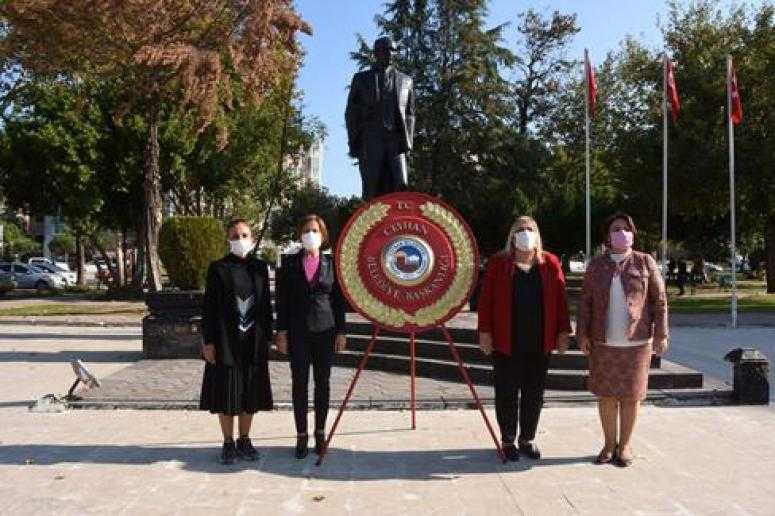 Atatürk anıtına çelenk sunumunun ardından saygı duruşu ve istiklal marşı okundu. Düzenlenen törenin ardından Milletvekili Müzeyyen Şevkin ve Belediye Başkanı Hülya Erdem çarşı esnafı ve kadınlara karanfil takdim ederek günlerini kutladı.