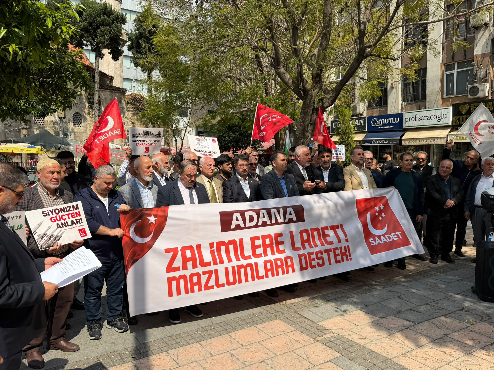 Saadet Partisi Adana İl Başkanlığı, Gazze’de yaşananlara dikkat çekmek amacıyla Kemeraltı Camii önünde Cuma namazı sonrası basın açıklaması düzenledi. Program, yapılan duanın ardından İl Başkanı Muhammet Çelebi Keyhıdır’ın açıklamalarıyla devam etti.