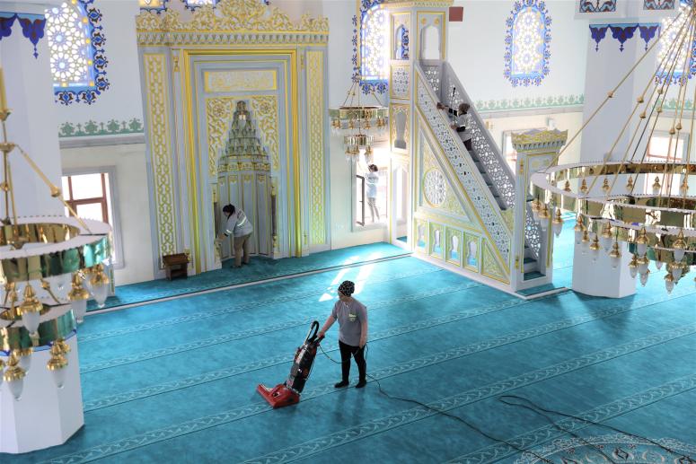 DEPREMZEDELERİN SIĞINDIĞI CAMİLER ÖZENLE TEMİZLENİYOR