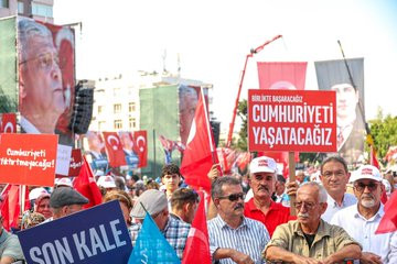 Kardeşlerim. O kadar doymaz, o kadar yetinmez haldeler ki, hiçbir yetki bunlara yetmiyor, milletin hiçbir tercihi umurlarında olmuyor, uyarılara aldırmıyor, eleştirileri umursamıyorlar. Ama emin olun, korkuyorlar, ‘Yeter artık’ diyenlerden korkuyorlar. O kadar çok korkuyorlar ki, hürriyet diyen, Cumhuriyet diyen, ne mutlu Türk’üm diyenlerden, işçiden, emekliden, gençlerden, kadınlardan, senden, benden, biz olmamızdan korkuyorlar. Sanıyorlar ki, ‘başarılıyız’ dediklerinde, beceriksizlikleri görülmeyecek. ‘Yaptık ettik diye reklam yaptıkça’, o kumdan kaleleri ayakta kalacak. Seçimle kazanamadıklarını, gasp ettiklerinde, muzaffer olacaklar, eğip büktüklerinde, adil olacaklar.