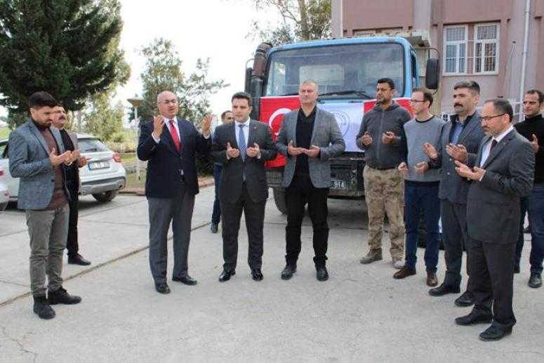 Karataş Belediye binasında toplanan yardımlar ilçe Kaymakamı Fatih Ayaz, Karataş Belediye Başkanı Necip Topuz ve İlçe Müftüsü Mehmet Akif Coşkun ve halkın katılımı ile araca yüklenerek gönderildi.