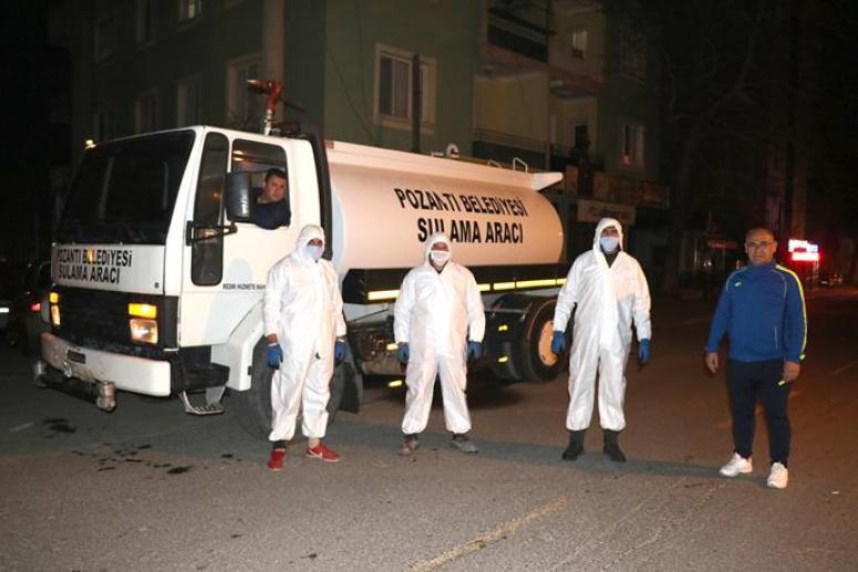 Pozantı Belediye Başkanı Mustafa Çay'ın talimatıyla özel olarak hazırlanan solüsyon ve dezenfektasyonlarla gündüz çöp konteynerleri dezenfekte edilirken gece de ilçedeki tüm cadde ve sokaklar solüsyonla yıkandı.