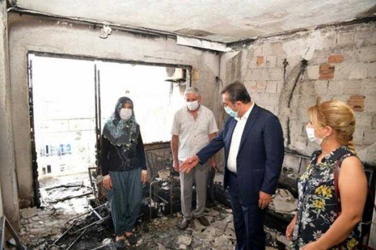 Burnukel ailesi kardeşlerinin evine sığınırken yangını haber alan Çukurova Belediye Başkanı Soner Çetin yanan dairede incelemede bulundu. Tülay-EsrafilBurnukel ile birlikte yanan daireye çıkan Başkan Soner Çetin gördükleri karşısında şok oldu. Ev tamamen kullanılmaz hale gelirken Başkan Soner Çetin, yangında can kaybı olmamasına şükretti.