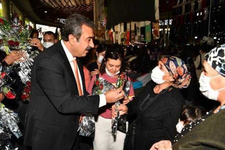 Hatıra fotoğrafı çektirmek isteyenlerin çokluğu nedeniyle pazara girmekte zorlanan Başkan Soner Çetin kadınlara gül dağıttı. Başkan Soner Çetin, esnafa hayırlı işler diledi, vatandaşlarla sohbet etti ve keyifli alışverişler dileğinde bulundu.