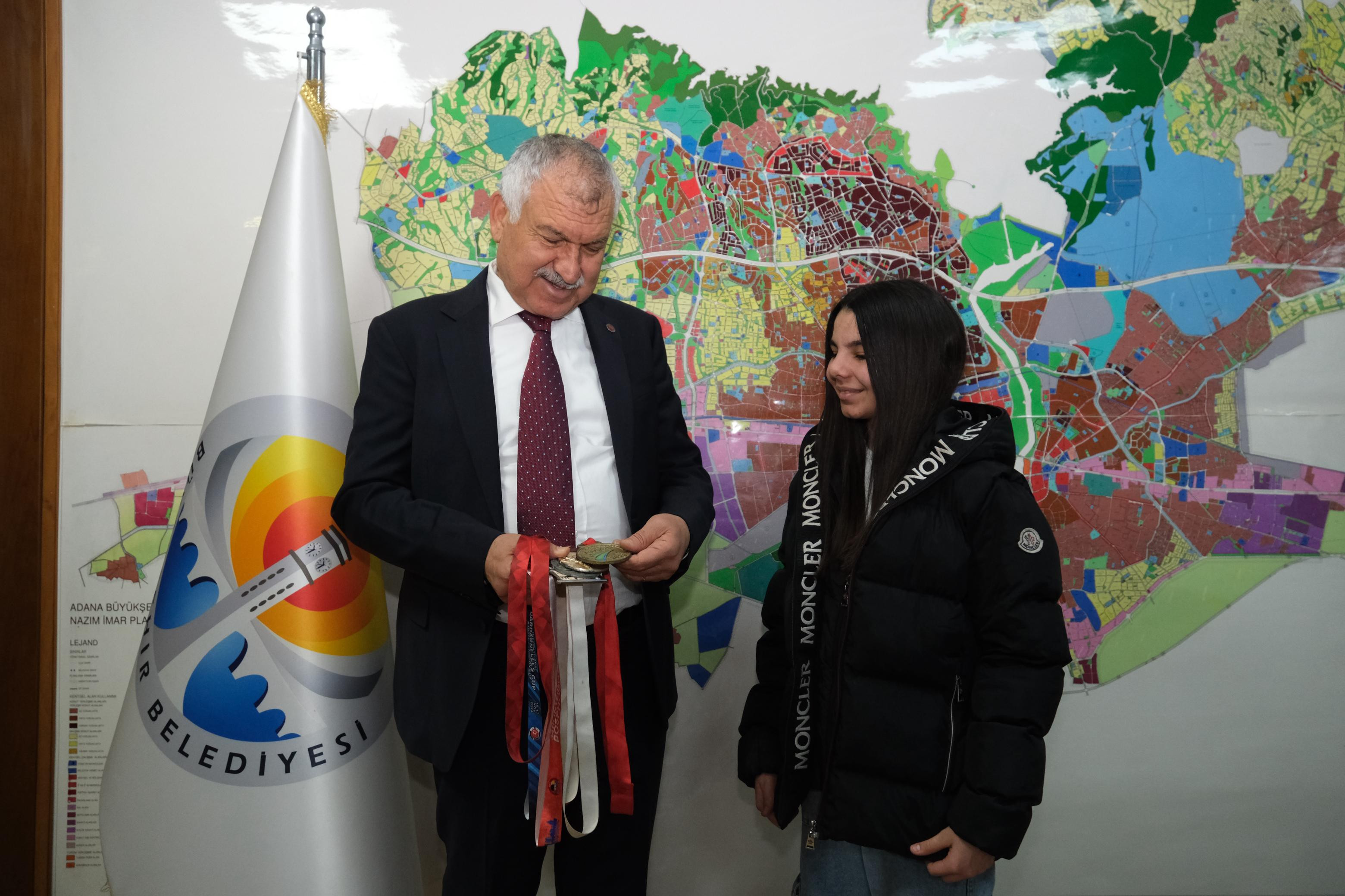 Adana’ lı milli sporcumuz Turna gürbüz'ü makamında misafir eden Başkan Zeydan Karalar görüşmesi sırasında Turna Gürbüz’ün Avrupa ve Balkan, Türkiye Şampiyonalarında kazandığı madalyaları dikkatle inceledi. Samimi bir havada gerçekleşen görüşme sırasında yakından ilgilendiği milli sporcumuza destek vereceğini açıkladı.