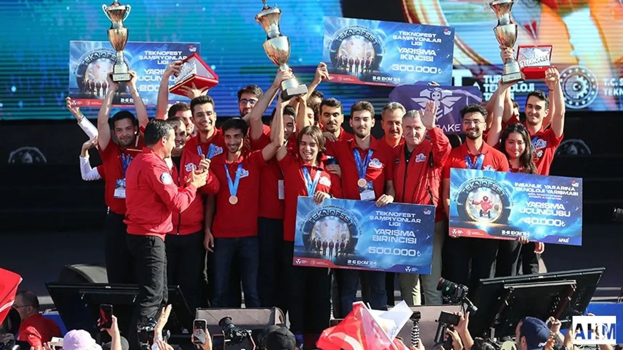 TEKNOFEST Şampiyonlar Ligi'nde hız kesmeden devam eden rekabetin sonunda ilk üç dereceye giren takımlar ödüllerini kapanış töreninde TEKNOFEST Yönetim Kurulu Başkanı Selçuk Bayraktar ve Sanayi & Teknoloji Bakanı Mehmet Fatih Kacır’ın elinden aldılar.