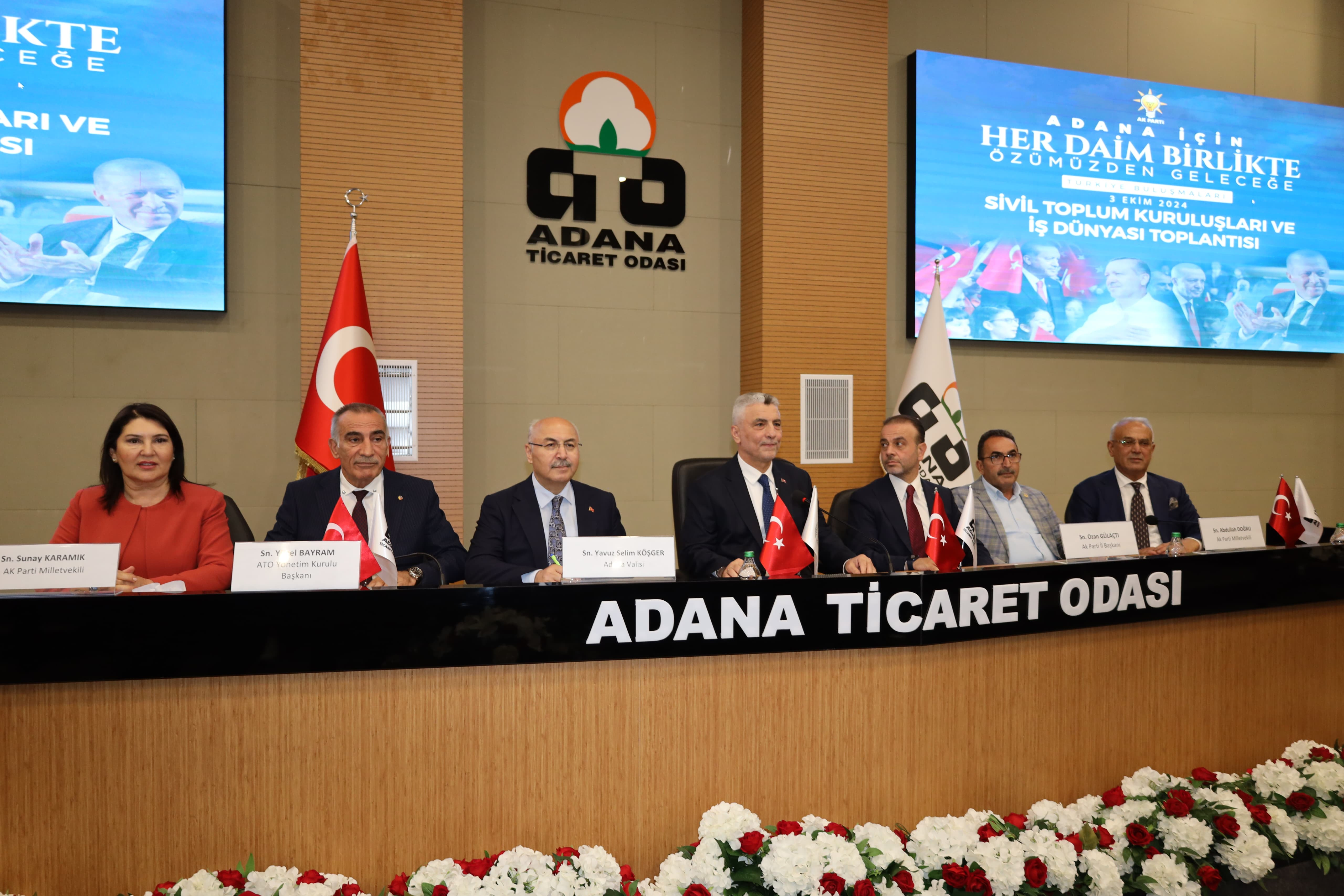 ATO Meclis Salonu’nda düzenlenen ve Oda başkanlarının yanı sıra çok sayıda STK temsilcisinin katıldığı toplantıda konuşan ATO Başkanı Yücel Bayram, ticaretin merkezi olan Adana Ticaret Odası’nın 38 bin üyesi, 121 meclis üyesi bulunduğunu ve 46 sektörle temsil edildiğini söyledi.