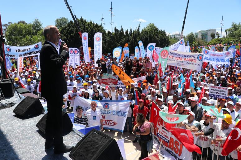 Türk İş 1 Mayıs Emek ve Dayanışma Gününü Adana’da kutladı. Genel Başkan Atalay, Taşeron sistemi ile vergi adaletsizliğinin son bulmasını istedi.