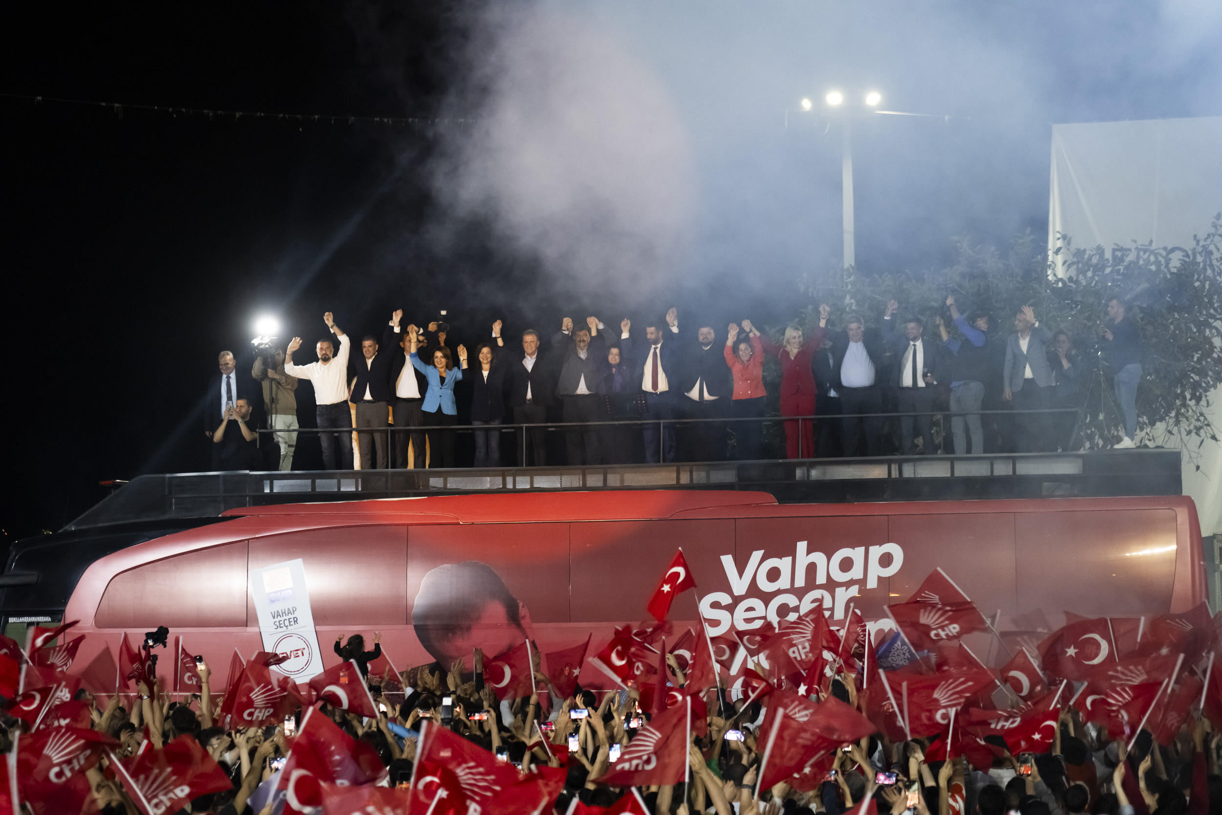 Başkan Seçer, kutlamada son olarak da CHP’li ilçe belediye başkanları ile birlikte zafer pozu verdi.