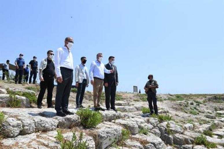 Vali Elban, Karataş’ta kazı çalışmaları devam eden Magarsus Antik Kenti’nde incelemelerde bulundu.
