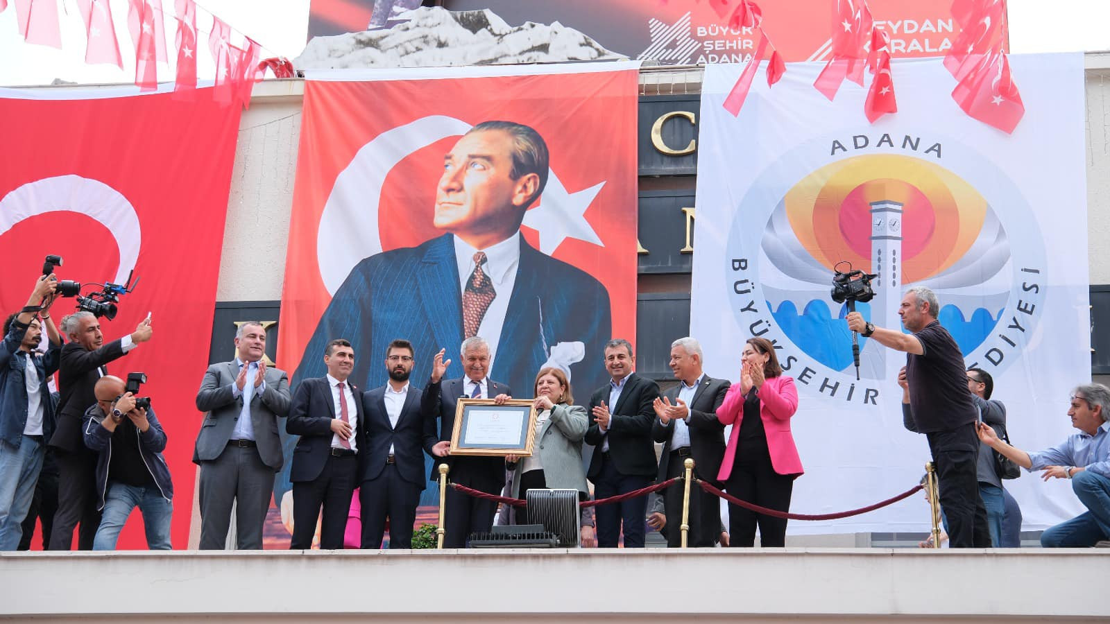 31 Mart 2024 yerel seçimlerinde Adana Büyükşehir Belediye Başkanlığı’na yeniden seçilen Zeydan Karalar, 10 binlerce hemşehrisine belediye balkonundan hitap etti.