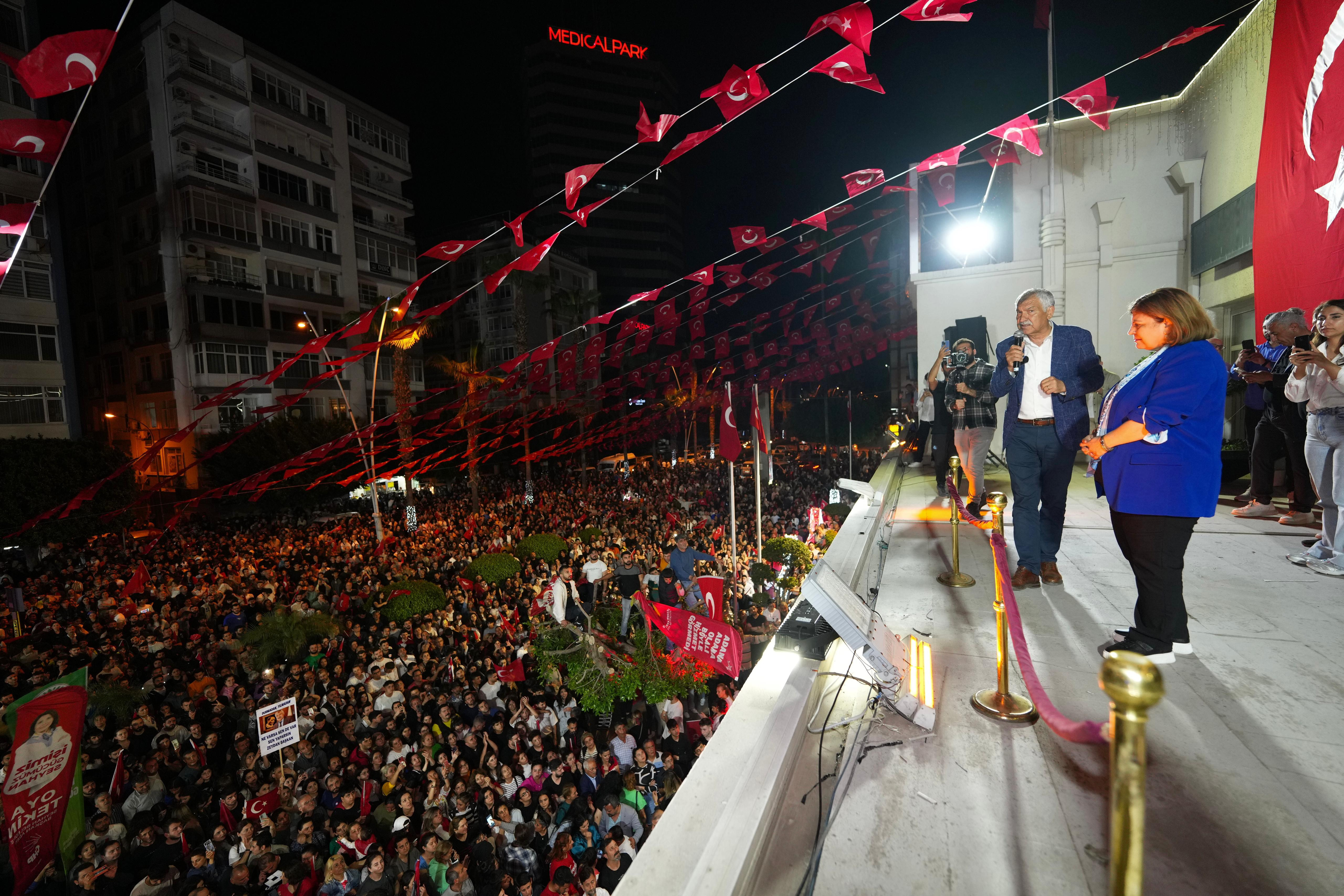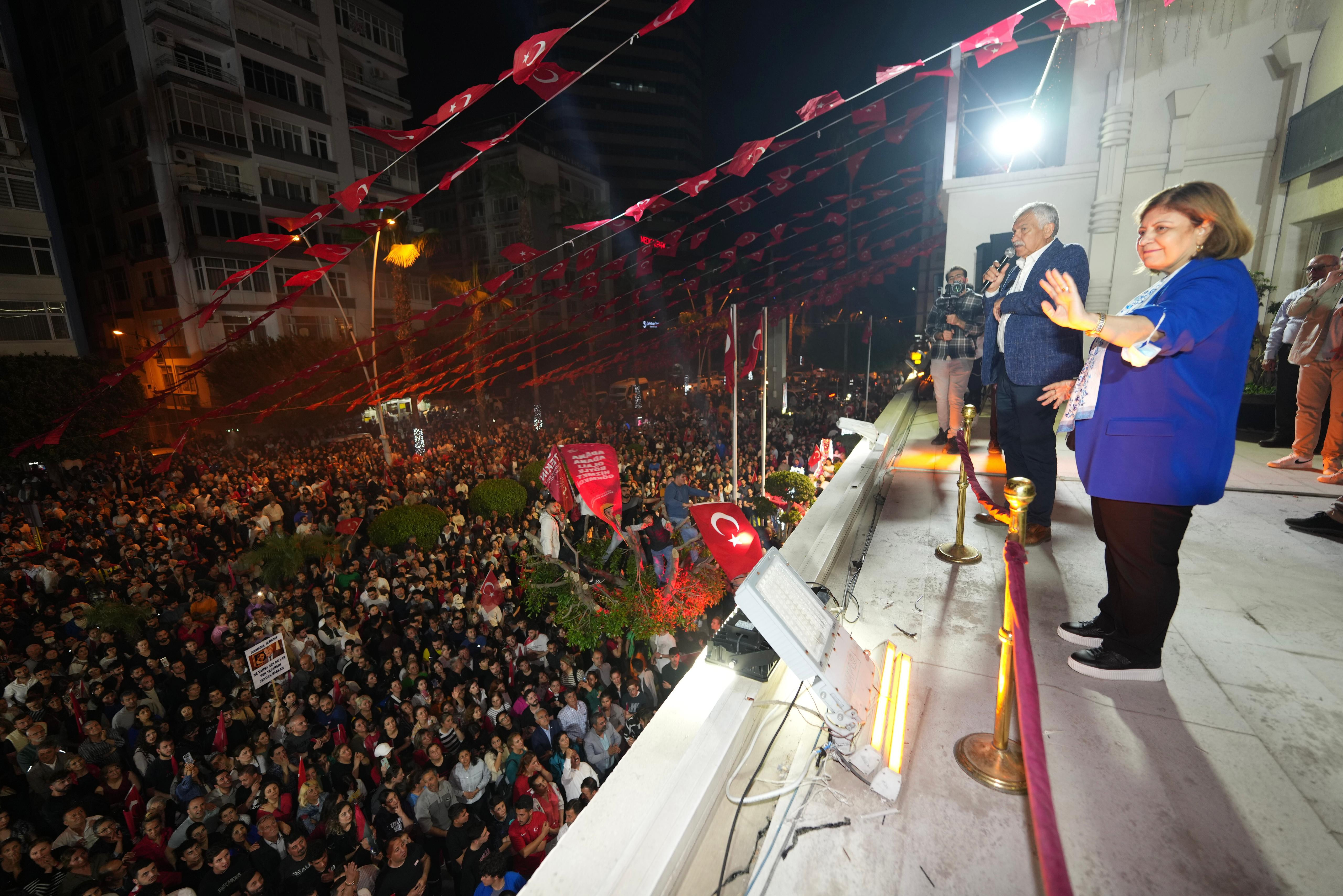 Yeniden ve büyük farkla seçilen Başkan Zeydan Karalar, 10 binlerce hemşehrisine balkondan hitap etti.