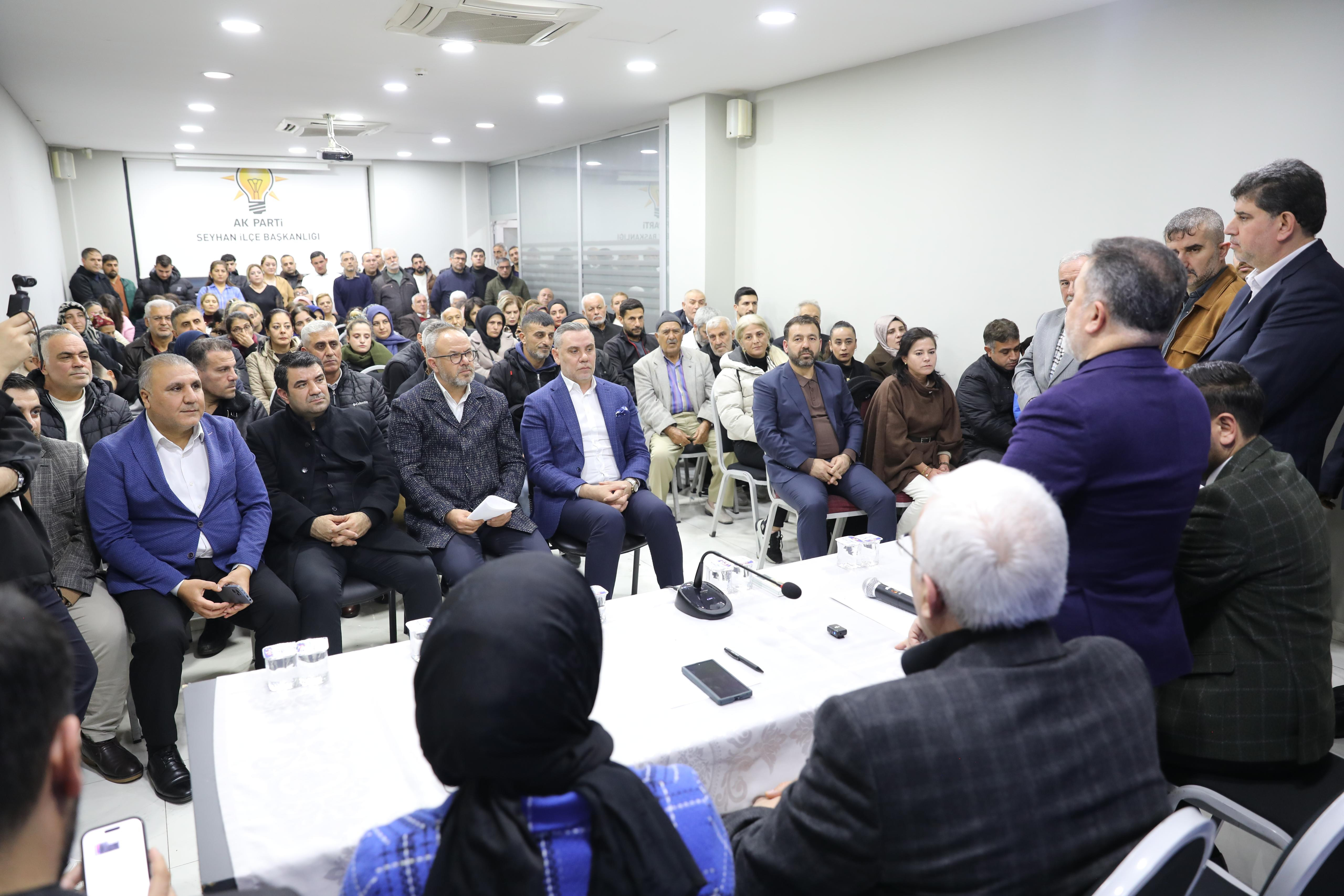 Toplantıya; AK Parti Erzurum Milletvekili ve Adana İl Koordinatörü Mehmet Emin Öz, AK Parti Adana İl Başkanı Tamer Dağlı, AK Parti Seyhan İlçe Başkanı İbrahim Gökçedağ, il başkan yardımcıları, İlçe Kadın Kolları Başkanı Sümeyra Özdemir, İlçe Gençlik Kolları Başkanı Oğuzhan Yarğı, bölge başkanları, mahalle başkanları ve mahalle yöneticileri katıldı.