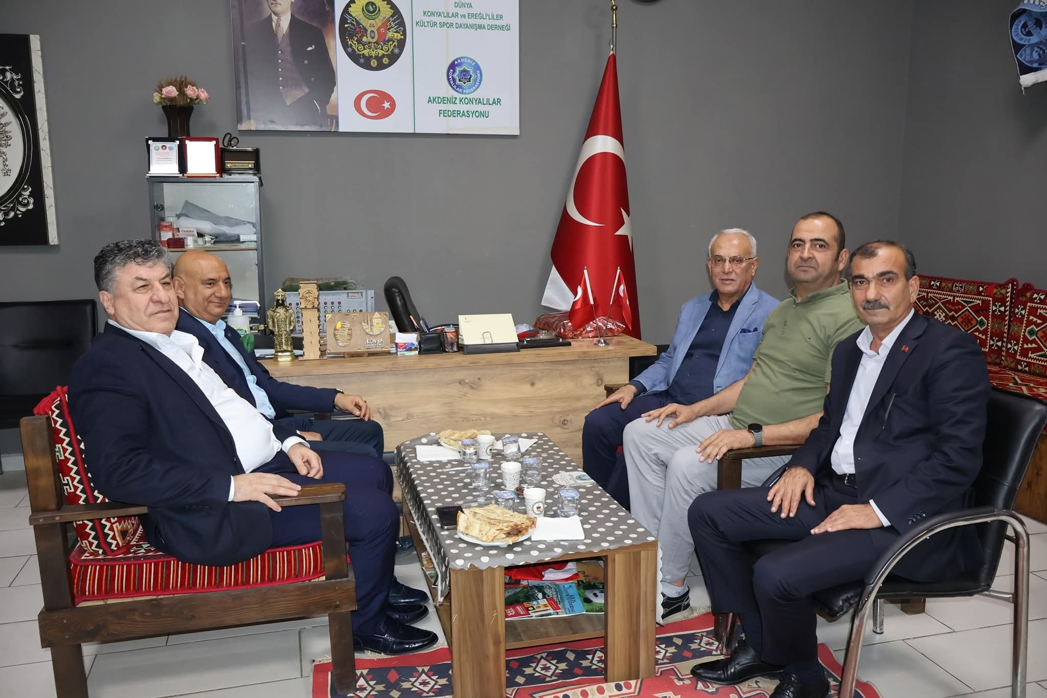 Ziyarette Dernek Başkanı Talip Pektaş, Başkan Kanlı’ya Konya yöresinin özgün el ürünü bir kilim hediye etti. Sıcak, samimi ve verimli geçen sohbet toplantısı, birlik ve beraberlik mesajlarının verildiği toplu fotoğraf çekimiyle sona erdi. Ziyarette İl Divan Kurulu Üyesi Veysel Kokaçya, Yüreğir İlçe Başkanı Ayhan Bulan ve Çukurova İlçe Başkanı Mehmet Şahin de yer aldı.