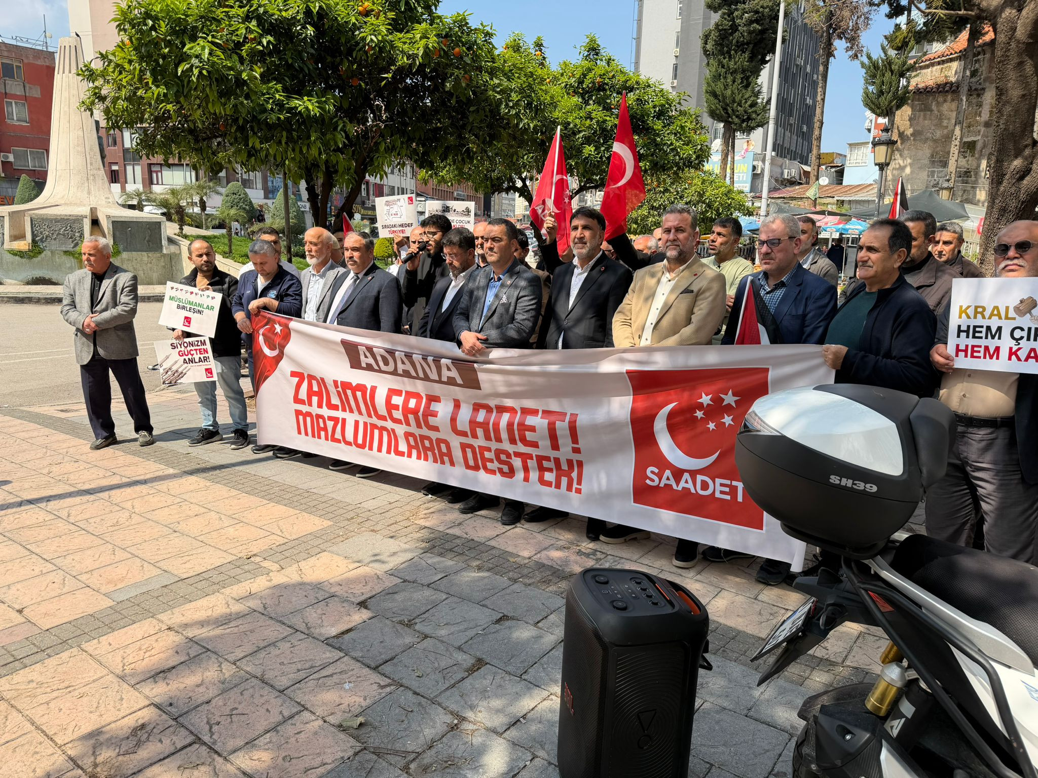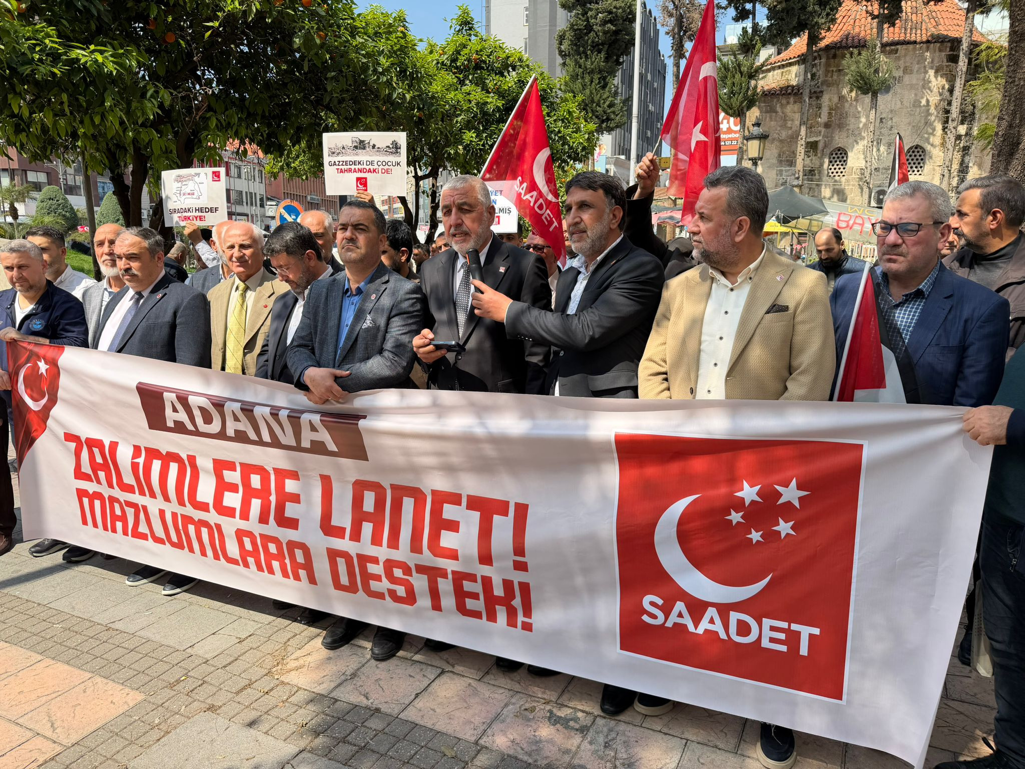 Saadet Partisi Adana İl Başkanlığı, Gazze’de yaşananlara dikkat çekmek amacıyla Kemeraltı Camii önünde Cuma namazı sonrası basın açıklaması düzenledi. Program, yapılan duanın ardından İl Başkanı Muhammet Çelebi Keyhıdır’ın açıklamalarıyla devam etti.