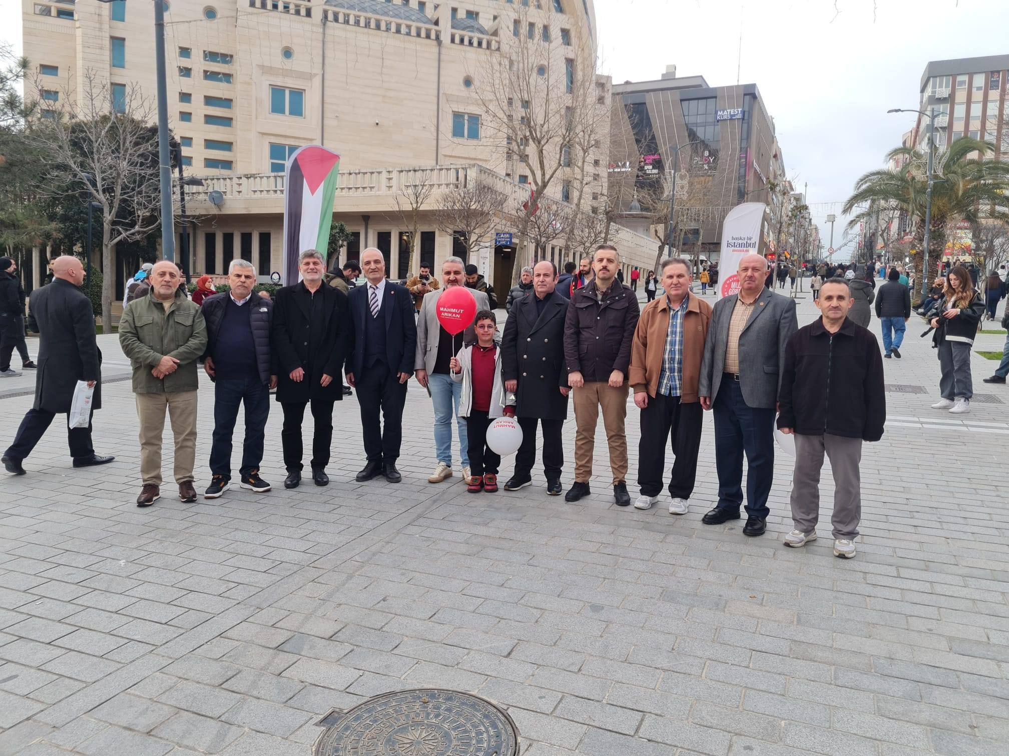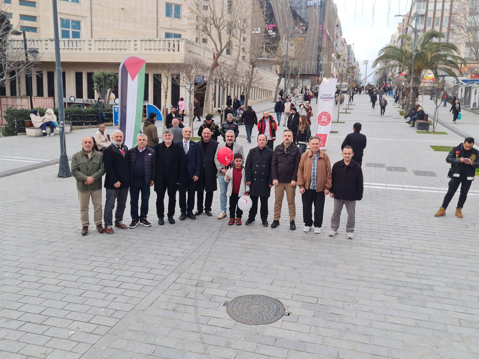 Avcılar İlçe Başkanı Ender Esiner, basın mensuplarına ve vatandaşlara yaptığı açıklamada, “Bugün burada sadece açıklama yapmak için değil; zalime karşı dimdik durmak, mazlumla omuz omuza olduğumuzu tüm dünyaya göstermek için toplandık” dedi.
