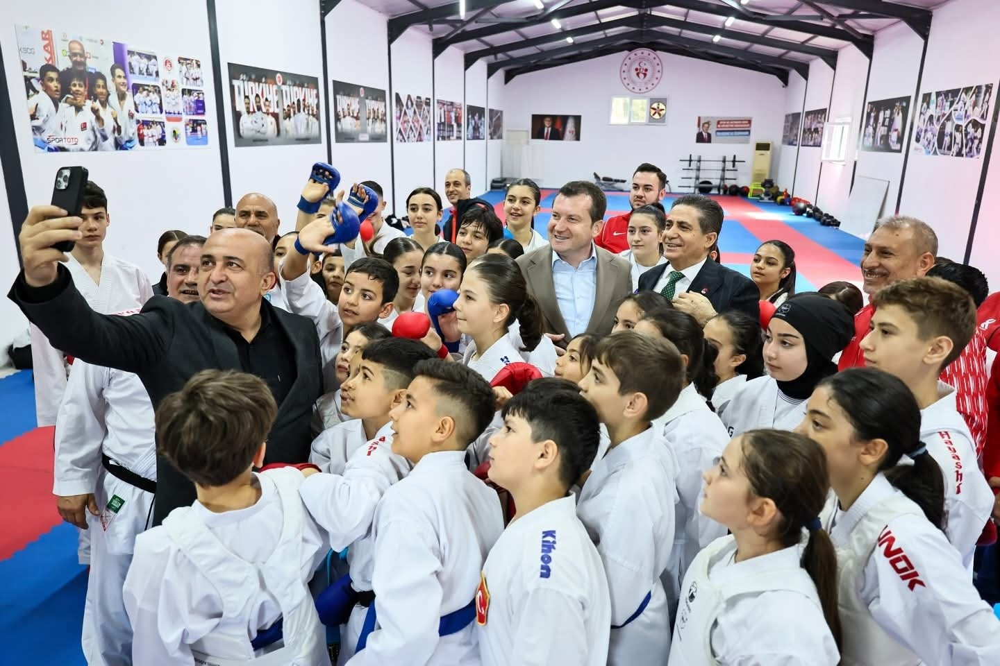 Ziyaret kapsamında kamp çalışmalarını yerinde inceleyen Başkan Balcıoğlu, hazırlık döneminde olan U14 Yıldız Milli Takım sporcularıyla yakından ilgilendi. Antrenman sürecine dair teknik ekipten bilgi alan Balcıoğlu, genç karatecilerle sohbet ederek onlara gelecek müsabakalar için başarı dileklerini iletti.