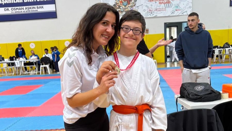 Yusuf’un karate yolculuğunda antrenörü Hilal Öztürk’ün katkısı büyük.